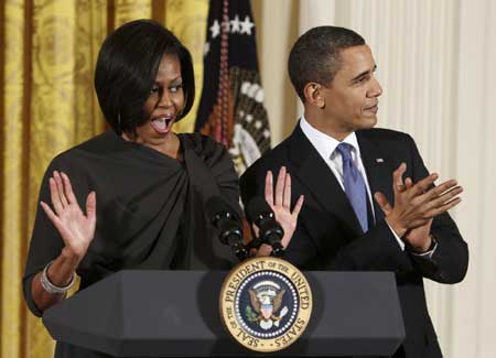 ![]() US President Barack Obama applauds as first lady Michelle Obama speaks at an International Women's Day event at the White House in Washington March 8, 2010.(Agencies)