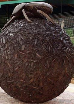 ![]() A sculpture of a dung beetle on top of ball of dung. The beetle, aka Onthophagus taurus, has been called the world's strongest insect by British and Australian scientists, as it can pull 1,141 times its own body weight -- the equivalent of a 70-kilogramme (154-pound) person being able to lift 80 tonnes, the weight of six double-decker buses. (Agencies) |