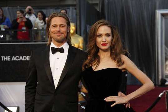 Brad Pitt and Angelina Jolie make their entrance during the 66th annual Golden Globe Awards in February 2012. (Agencies) |