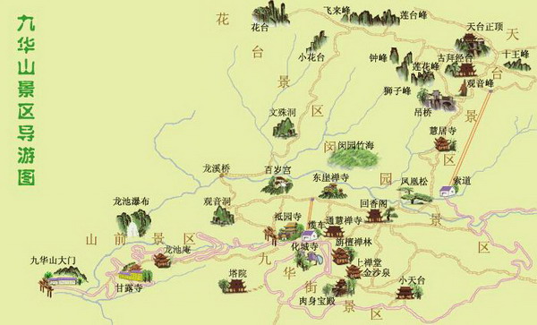 Map of Jiuhua Mountain scenic area