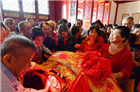 Hundreds of people from Taiwan and Fujian province climbed up Pingshan Mountain to see a giant red turtle statue made from 1,000 bags of rice on Oct 28.