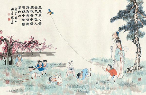 Flying Kite, by painter Wen Yongchen. [Photo/Artron.net] |