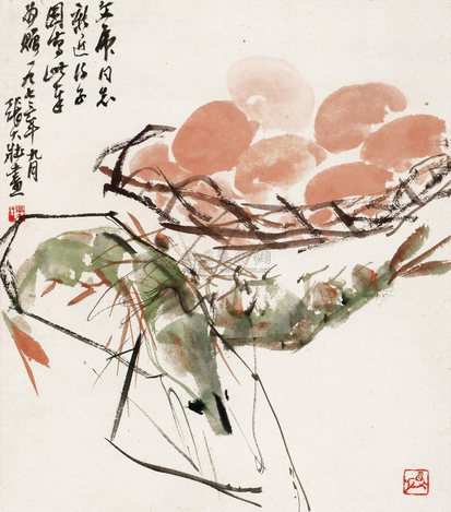 Shrimp and Eggs, by Zhang Dazhuang. [Photo/Artron.net] |