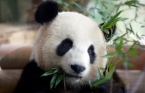 Meng Meng, one of two Chinese pandas, receives a birthday cake to mark its four-year-old birthday in the enclosure at the zoo in Berlin, on July 10, 2017.