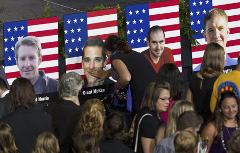 ![]() Jamaican runners Usain Bolt (L) and Yohan Blake prepare to run in the men's 400m race of the Camperdown Classic, an annual track event in its ninth year, in Kingston February 9, 2013.??[Photo/Agencies] |