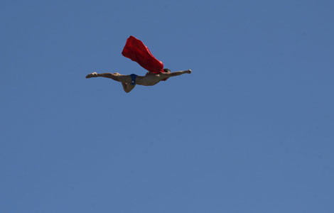 Cesilie Carlton competes during the second round of the 20m high diving event in Barcelona on Tuesday. Gustau Nacarino / Reuters |
