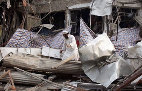 Aston Villa's Nathan Baker (left) is challenged by Manchester City's Edin Dzeko during their English Premier League match at Villa Park in Birmingham, central England, on Saturday. Villa stunned City 3-2. Darren Staples / Reuters |