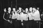 File photo of China's women's volleyball team on the top podium of the 9th World Women's Volleyball Championships in 1992. Chen Zhaodi and Lang Ping were members of the winning team.
