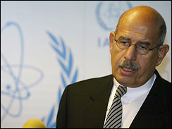 "The time is right for a political solution and the way is negotiations," the head of the International Atomic Energy Agency told journalists at Mehrabad International Airport in Tehran just after midnight Wednesday local time. ElBaradei's visit began not long after Tehran's announcement Tuesday that the country had successfully enriched uranium, a key step to producing peaceful nuclear energy or nuclear weapons. "I would like to see Iran come to terms with the requests of the international community," he said, explaining the purpose of his trip as being "to clarify remaining outstanding issues on the nature of the Iranian program." Earlier Wednesday, the country's deputy nuclear chief said Iran intends to move toward large-scale uranium enrichment involving 54,000 centrifuges, signaling its resolve to expand a program the international community has insisted it halt. That will be hundreds of times more than what the country has now, reports CBS News correspondent Jim Axelrod. If true, Axelrod adds, that would be enough to produce hundreds of nuclear warheads. Iran's president had announced Tuesday that the country had succeeded in enriching uranium on a small scale for the first time, using 164 centrifuges. The U.N. Security Council has demanded that Iran stop all enrichment activity because of suspicions the program's aim is to make nuclear weapons. "We will expand uranium enrichment to industrial scale at Natanz," Deputy Nuclear Chief Mohammad Saeedi told state-run television Wednesday. He said Iran has informed the International Atomic Energy Agency that it plans to install 3,000 centrifuges at Natanz by late 2006, then expand to 54,000 centrifuges, though he did not say when. He said using 54,000 centrifuges will be able to produce enough enriched uranium to provide fuel for a 1,000-megawat nuclear power plant like the one Russia is currently putting the finishing touches on in southern Iran. Iran's claims brought it fresh international condemnation as allies Russia and China joined several European countries and the United States in expressing their disapproval over the nuclear activities. Already the U.N. Security Council had given it until April 28 to clear up suspicions that it wants to become a nuclear power. It has asked Tehran to suspend enrichment and allow unannounced IAEA inspections. The White House is pressing for U.N. sanctions against Iran. ElBaradei said he hoped the visit would “bring Iran in line with the requests of the international community to take confidence-building measures regarding its activities including suspension of enrichment and related activities until outstanding issues are clarified.'' A team of five IAEA inspectors arrived in Iran late last week. On Thursday, ElBaradei is expected to meet Iran's nuclear chief Vice President Gholamreza Aghazadeh. "I don't know anyone on god's green earth that actually thinks that's what the Iranians are interested in," Richard Haass, president of the Council on Foreign Relations told CBS News' The Early Show co-anchor Hannah Storm. "They don't need nuclear power for electricity because they've got all this oil and gas. So this is a serious moment. But, again, the world still has time for diplomacy to try to put a ceiling on what they're doing," Haass said. Iranian President Mahmoud Ahmadinejad announced the enrichment success Tuesday in a nationally televised ceremony, saying the country's nuclear ambitions are peaceful and warning the West that trying to force Iran to abandon enrichment would "cause an everlasting hatred in the hearts of Iranians." The United States is not taking Iran's claim at face value, CBS News senior White House correspondent Bill Plante reports, and top officials tell CBS News that they just can't be sure. But the announcement quickly raised condemnations from the U.S., who said the claims "show that Iran is moving in the wrong direction." Denouncing Iran's successful enrichment of uranium as unacceptable to the international community, Secretary of State Condoleezza Rice said Wednesday the U.N. Security Council must consider "strong steps" to induce Tehran to change course. She said "this latest announcement...will further isolate Iran." Rice also telephoned Mohamed ElBaradei, the head of the International Atomic Energy Agency, to ask him to reinforce demands that Iran comply with its nonproliferation requirements when he holds talks in Tehran on Friday. The U.S. remains convinced Iran wants to build a nuclear weapon. "This is not a question of Iran's right to civil nuclear power," Rice said while greeting President Teodoro Obiang Nguema Moasogo of Equatorial Guinea. "This is a question of, ... the world does not believe that Iran should have the capability and the technology that could lead to a nuclear weapon." Russia also criticized the announcement Wednesday, with Foreign Ministry spokesman Mikhail Kamynin saying, "We believe that this step is wrong. It runs counter to decisions of the IAEA and resolutions of the U.N. Security Council." Former Iranian president Hashemi Rafsanjani, a powerful figure in the country's clerical regime, warned that pressuring Iran over enrichment "might not have good consequences for the area and the world." If the West wants "to solve issues in good faith, that could be easily possible, and if they want to ... pressure us on our nuclear activities, things will become difficult and thorny for all," Rafsanjani said in an interview with the Kuwaiti newspaper Al-Rai Al-Aam, published on Wednesday. Rafsanjani, who heads Iran's Expediency Council, a powerful body that arbitrates between the parliament and the clerical hierarchy, said planned talks between Iran and the United States on stabilizing Iraq could lead to discussions on the nuclear dispute. "We don't have a mandate to discuss the nuclear issue with the Americans ... but if the talks on Iraq go in the right direction, there might be a possibility for that issue," Rafsanjani said in an interview with t